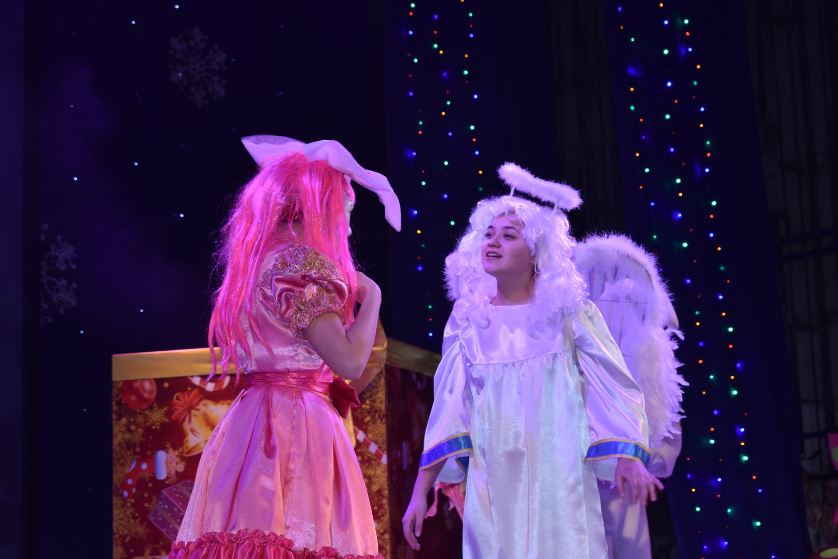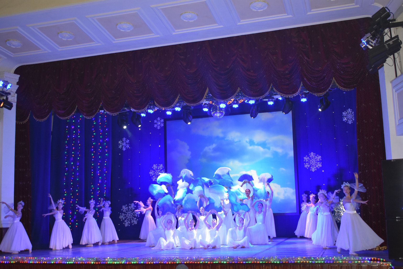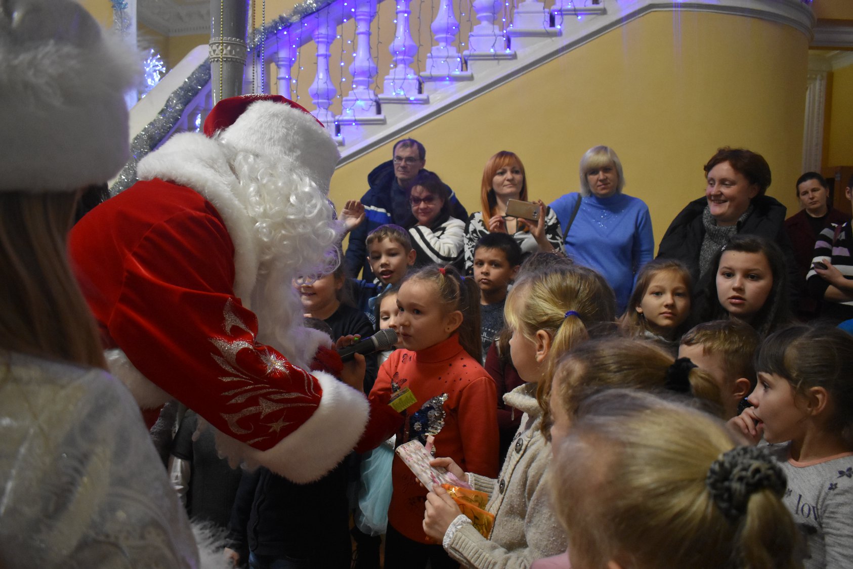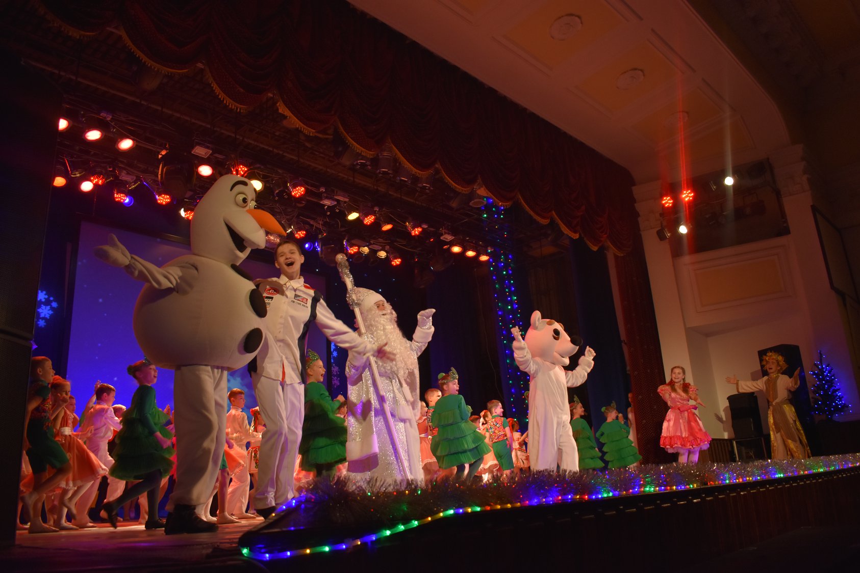 На запрошення Кіровоградської обласної філармонії Кіровоградський ОЦДЮТ створив грандіозне святкове дійство для головної дитячої новорічної ялинки міста та області! Вже з 23-го грудня філармонія повна дитячим сміхом і захватом від приготовлених для них забавлянь, які триватимуть і до 30-го грудня. Прийшовши на ялинку дітей зустрічають казкові герої, які бавляться з ними, фотографуються, водять хороводи навколо ялинки. Ну, і звісно, як же ж без Діда Мороза та Снігуроньки, які з радістю послухали віршики, які підготувала малеча, пісеньки, та разом з дітьми запалили ялинку! Далі всіх дітей запрошують до зали, де їх очікує головний подарунок – казковий мюзкл-шоу «Новорічна зірка бажань». Це історія про новорічні іграшки, які пройшли небезпечний, але повний пригод шлях, щоб здійснити свої найзаповітніші мрії! Діти дуже переймались за головних героїв, підтримували їх і допомагали відігнати підступних поганців, які траплялись їм на шляху! Режисером мюзклу-шоу є Валентина Політаєва (Відмінник освіти України), головний балетмейстер – Галина Чайковська (Заслужений працівник культури України, кавалер ордену княгині Ольги III ступеня), автор музичного оформлення і текстів пісень – Олена Дороганич, балетмейстер – Маргарита П’ятова, автор сценарію – Наталія Долгополова (Заслужений працівник освіти України), а автором ідеї саме такої новорічної казки – Ірина Полонська (заступник директора Кіровоградської обласної філармонії по роботі з дітьми).