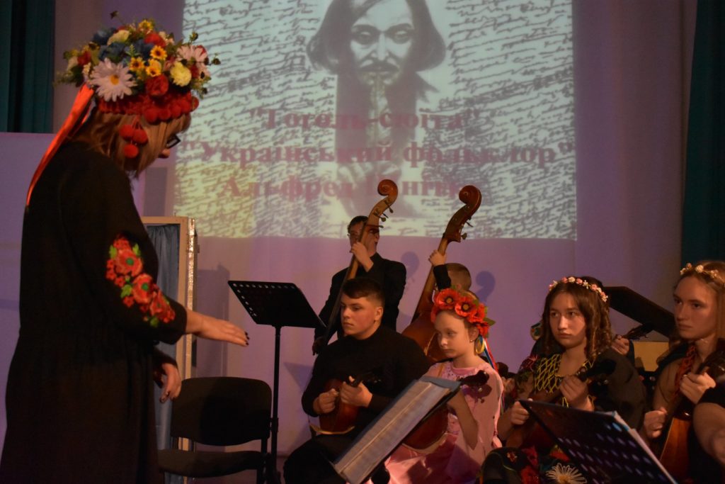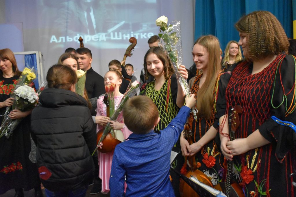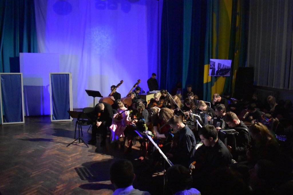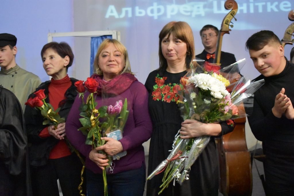 Альфред Шнітке – відомий композитор, педагог і музикознавець, який своєю творчістю зробив значний внесок в розвиток мистецтва. «Його музика – це підслухані крики часу» – саме це відчули глядачі «МУЗИЧНОГО ТЕАТРУ ПОЛЕГШЕНОГО АБСУРДУ», який відбувся у глядацькій залі Кіровоградського обласного центру дитячої та юнацької творчості. Захід пройшов за участі народних художніх колективів: оркестру народних інструментів «Орія» (керівник та диригент, Заслуженний працівник освіти України – Софія Матрос), театру-студiї «Маска» (керівник – Відмінник освіти України – Надія Фільченкова), хореографічного ансамблю «Росинка» (керівник – Заслужений працівник культури України, кавалер ордену княгині Ольги III ступеня – Галина Чайковська), лауреати всеукраїнських та міжнародних конкурсів – Олександр Овдієнко (флейта), Сергій Таргоній (баян), Олег Дмитренко (баян). Глядацька зала була переповнена! Постановка вражала: одна історія-замальовка змінювала іншу, актори раптово виходили на сцену не тільки з куліс, а з зали, з самого оркестру. Це було цікаво і неочікувано. Актори, танцюристи, музиканти, диригент постійно змінювали свій образ та костюми і щоразу один не був схожим на інший. Театр тіней приголомшив своєю неочікуваністю та реалістичністю. Музика оркестру пробуджувала у глядача усю палітру почуттів: здивування, страх, тривогу, співчуття, захоплення, милування, закоханість, злість, слабкість, стійкість. Перед початком заходу, художній керівник колективу «Орія» Софія Матрос, звертаючись до глядачів, попросила не аплодувати після кожної композиції, аби не збити цілісність картини. І це було найскладнішим випробуванням для присутніх. В кінці концерту зала аплодувала стоячи і ці оплески досить довго не вщухали! Це була дійсно дуже театральна, дуже абсурдна, гостро-соціальна та філософська постанова! Ще раз БРАВО усім, хто долучився до її створення!
