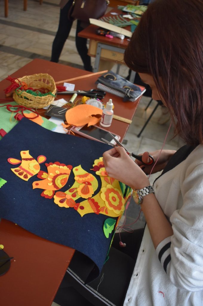 Поки учасники конкурсної програми “Декоративно-прикладне мистецтво” працюють над своїми роботами, для педагогів проходятьмайстер-класи з обміну досвідом керівників гуртків, які також є учасниками фестивалю.