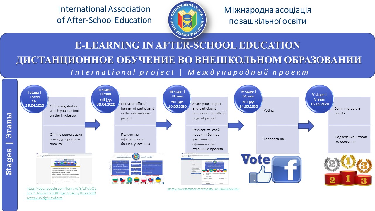 16.04.2020 розпочнеться Міжнародний проект “Дистанційне навчання у позашкільній освіті” – International projekt “E-Learning in After-School Education“.