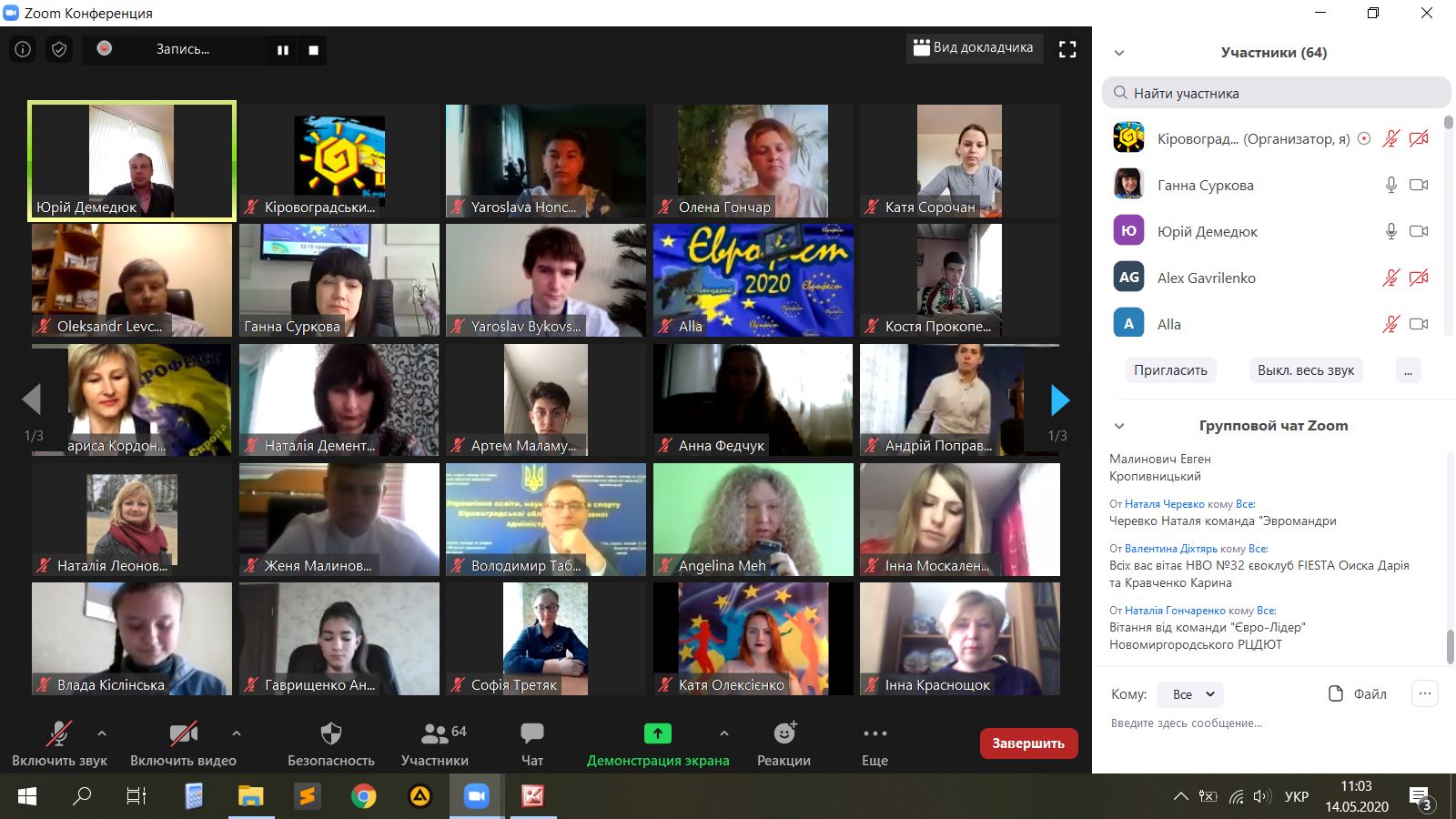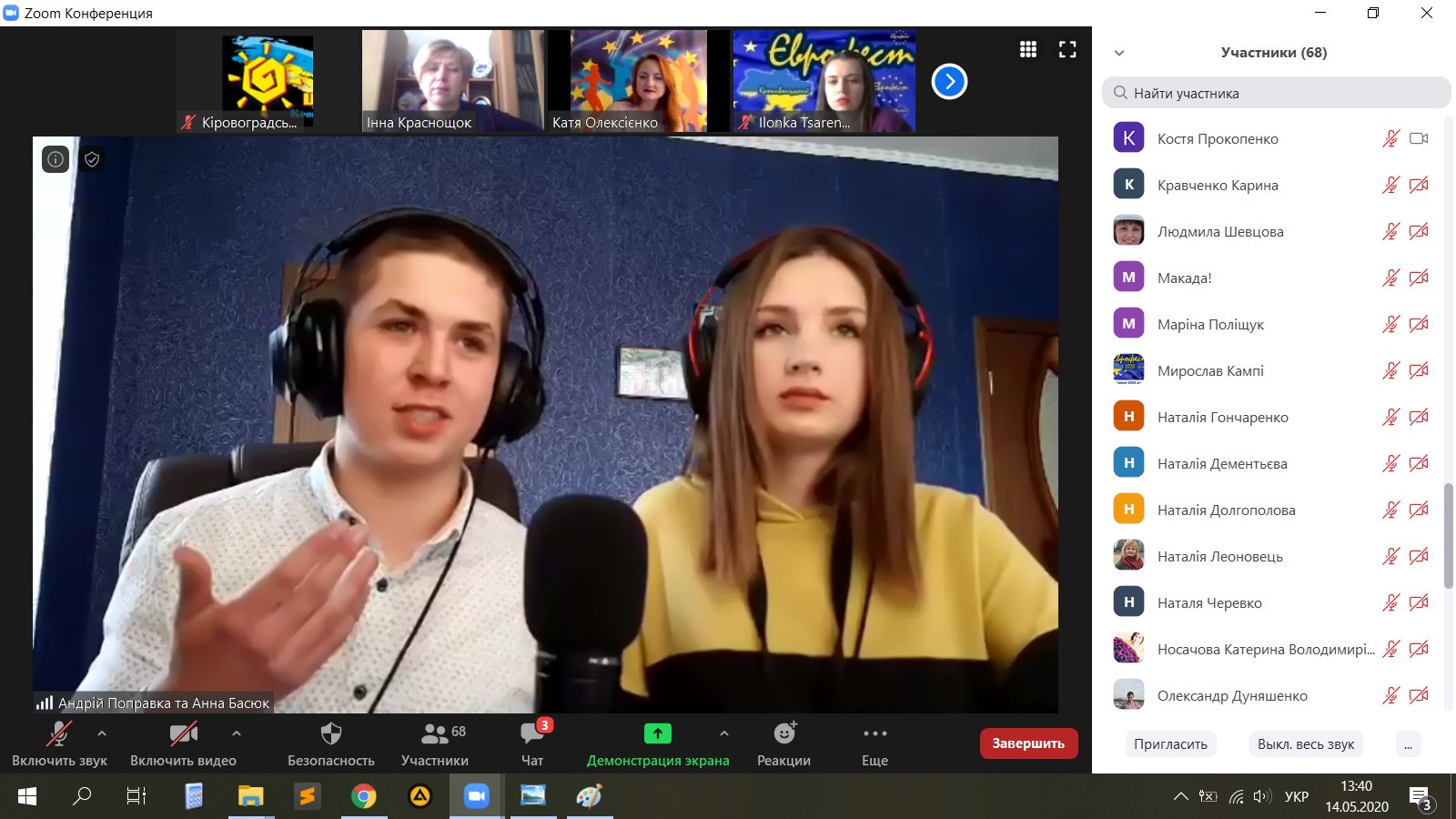 Ранок фестивального дня розпочався з віртуальної виставки конкурсних малюнків і постерів “Україна європейська” та відео подорожі “Вихованці Кіровоградського обласного ЦДЮТ мандрують Європою”