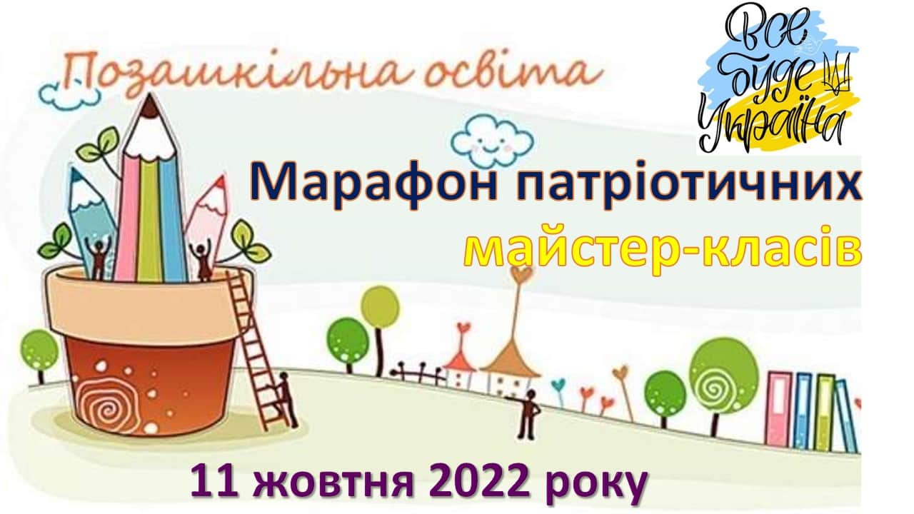 До Дня захисників і захисниць України ❶❶ жовтня ❷⓿❷❷ року на базі КЗ «КОІППО імені Василя Сухомлинського» у форматі онлайн відбудеться Марафон майстер-класів керівників гуртків закладів освіти «Розвиваємо творче мислення та креативність в умовах гуртка». Тематика майстер-класів спрямована на формування патріотичних почуттів учнів і усвідомлення української ідентичності.