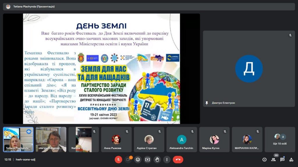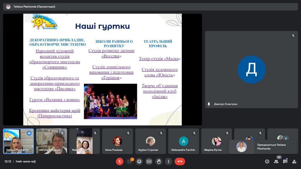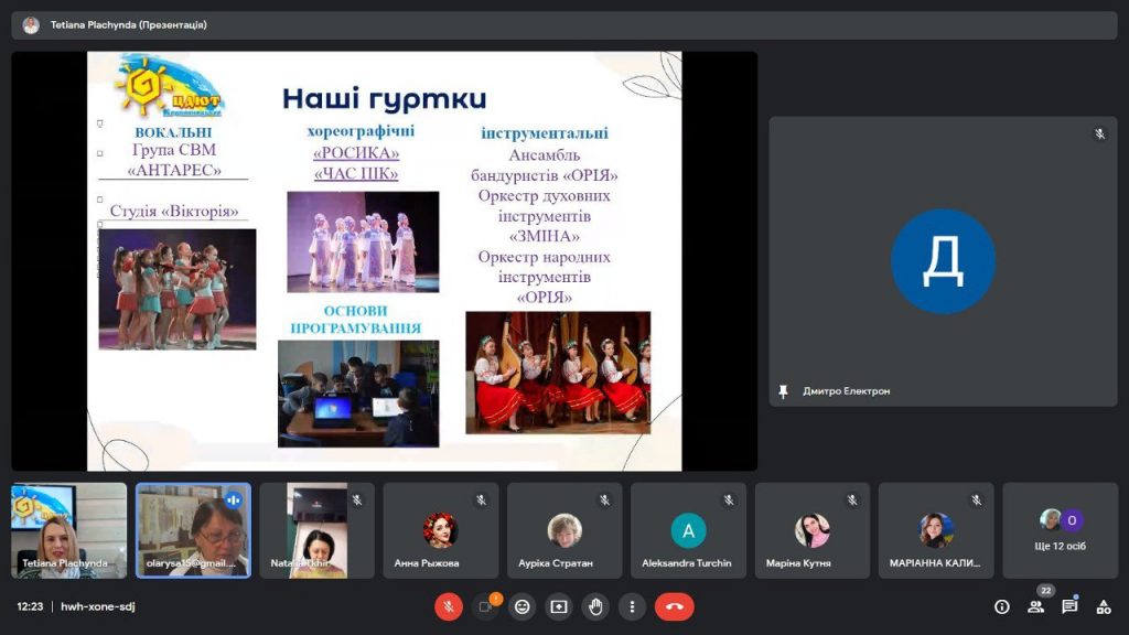 У контексті співпраці комунального позашкільного навчального закладу «Кіровоградський обласний центр дитячої та юнацької творчості» з Українським державним університетом імені Михайла Драгоманова та в рамках експерименту всеукраїнського рівня «Дуальне навчання в професійній підготовці педагогічних працівників позашкільної освіти» 29 листопада 2023 року відбулася зустріч заступника директора з навчально-методичної роботи Кіровоградського обласного ЦДЮТ, доктора педагогічних наук, професора Тетяни ПЛАЧИНДИ зі здобувачами освіти Українського державного університету імені Михайла Драгоманова, які навчаються за освітньо-професійною програмою «Позашкільна освіта», спеціальність 011 «Освітні, педагогічні науки».