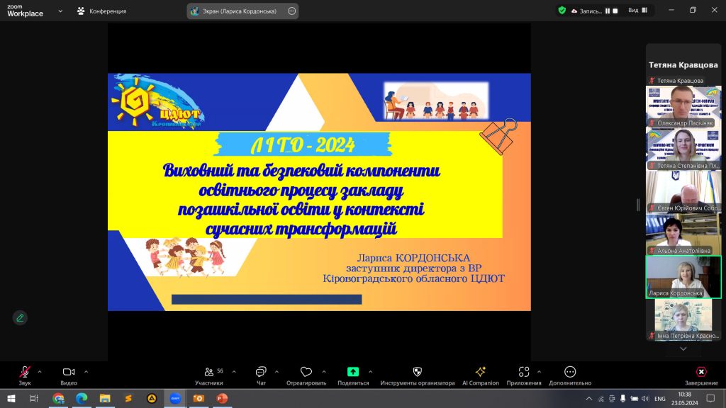23 травня 2024 року комунальним позашкільним навчальним закладом «Кіровоградський обласний центр дитячої та юнацької творчості» у співпраці з Центральноукраїнським державним університетом імені Володимира Винниченка проведено ІІ Регіональний науково-методичний семінар-практикум «Інноваційні підходи до організації освітнього процесу у закладі позашкільної освіти в умовах повоєнного відновлення країни».