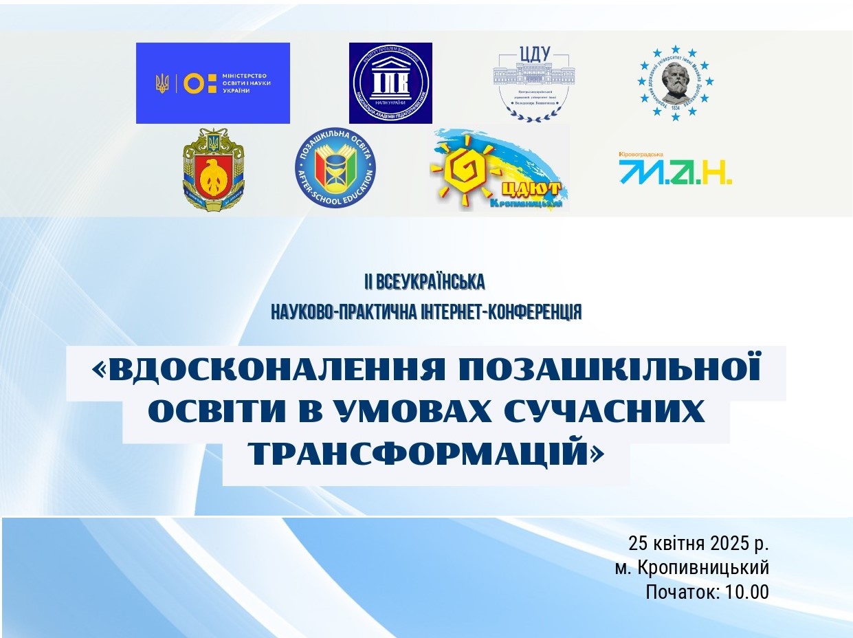ІІ Всеукраїнська науково-практична інтернет-конференція «Вдосконалення позашкільної освіти в умовах сучасних трансформацій»
