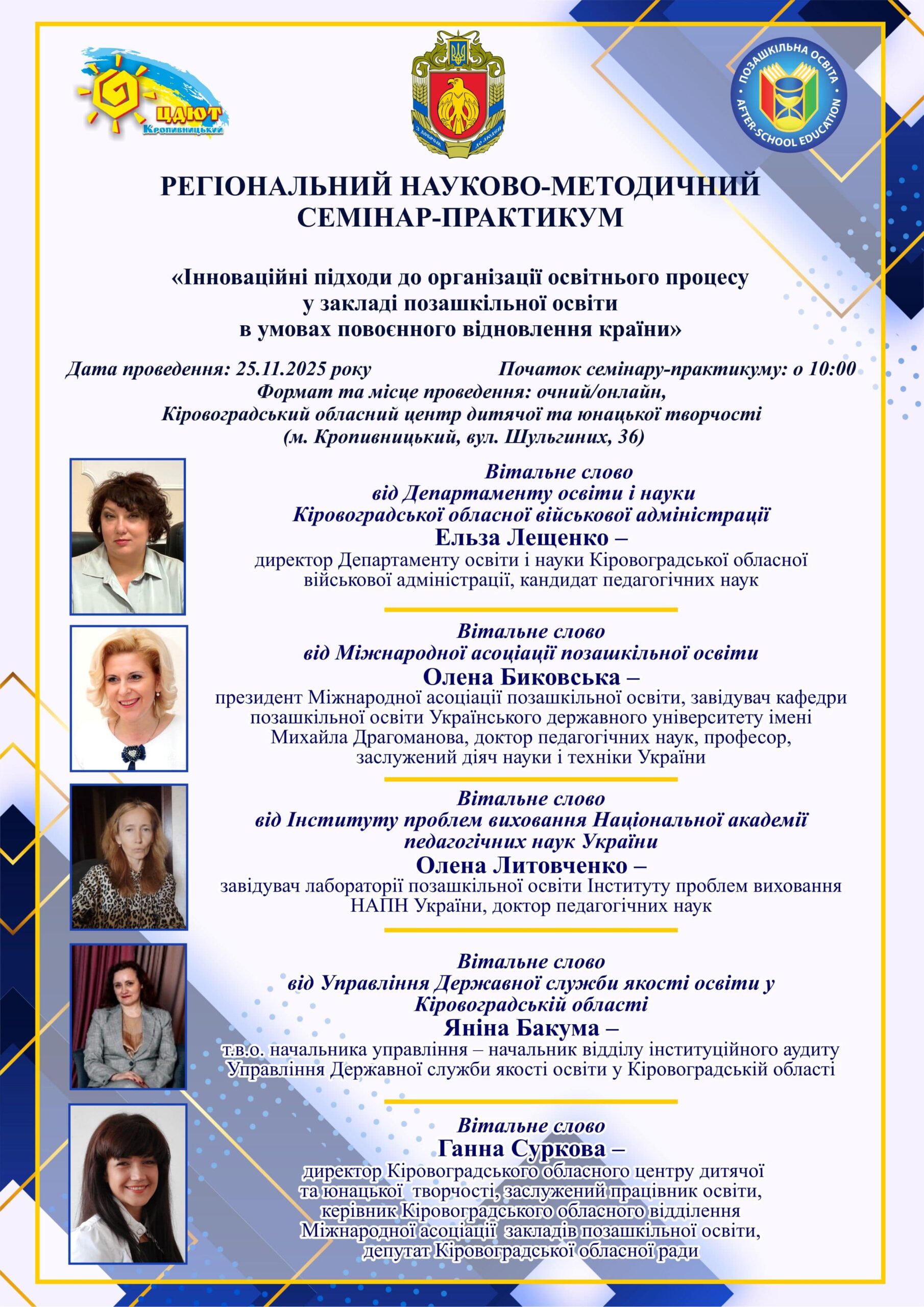 ІV Регіональний науково-методичний семінар-практикум “Інноваційні підходи до організації освітнього процесу у закладі позашкільної освіти в умовах повоєнного відновлення країни”