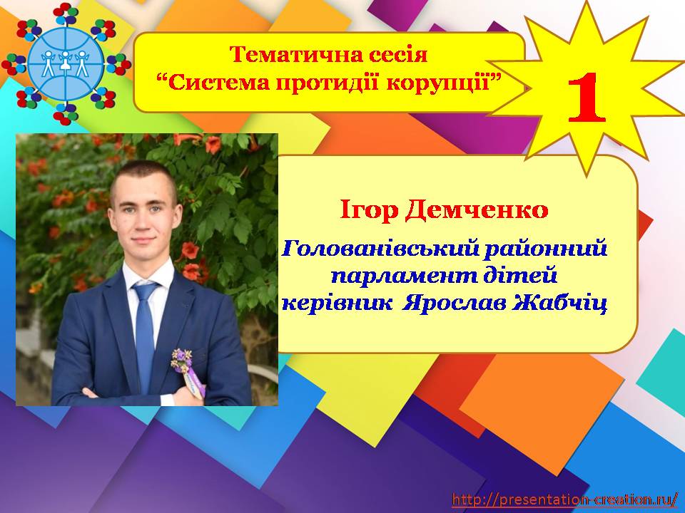 🥇Демченка Ігоря Олександровича за перемогу в індивідуальному заліку тематичної сесії “Система протидії корупції” , члена команди Голованівського районного парламенту дітей Голованівського районного будинку дитячої та юнацької творчості,
