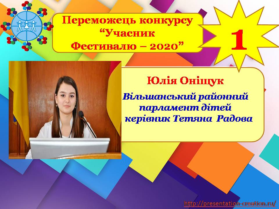 🥇Оніщук Юлію Володимирівну, члена команди “Вільшанський районний парламент дітей” Вільшанського центру дитячої та юнацької творчості