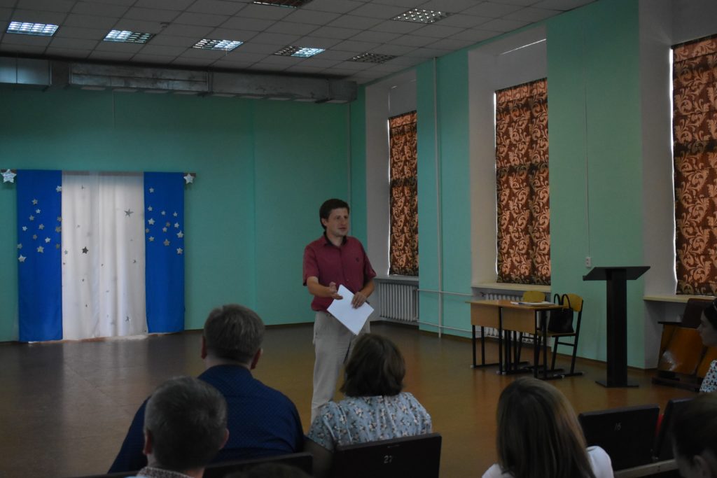 Під час свого виступу Олег Ігоревич Шаров наголосив на майбутніх змінах, що чекають сферу освіти України найближчі роки, а також, за дорученням голови Держслужби якості освіти Руслана, представив присутнім начальника управління Державної служби якості освіти у Кіровоградській області – Лілію Сергіївну Синчук, яка обійняла цю посаду в результаті конкурсного відбору.