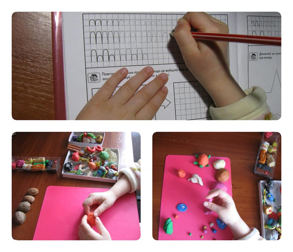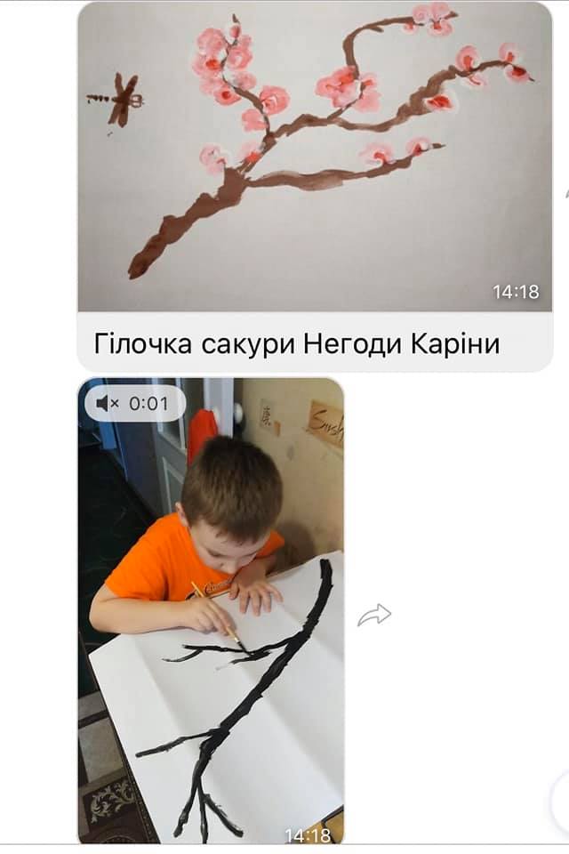 Спільно з батьками діти продовжують опрацьовувати навчальний матеріал за посібниками, придбаними на початку навчального року; виконують вправи на додаткових роздруківках; вчать віршики та скоромовки; розв’язують цікаві ребуси та кросворди. Для виконання творчих завдань керівник виставляє посилання на відеоуроки та майстер класи з YouTube. Батьки звітують фото та відео з дітьми про виконання завдання.