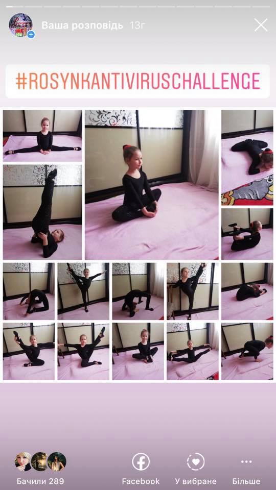 Вихованці Народного художнього колективу хореографічного ансамблю “Росинка”(керівник – Заслужений працівник культури України Галина Чайковська) Кіровоградського обласного ЦДЮТ під час карантину не сумують, а розтягуються та працюють! Для урізноманітнення діяльності часники колективу беруть активну участь у #RosynkAntiviruschallenge, за умовами якого діляться своїми активностями на офіційній сторінці колективу в Інстаграм /rosynka_official/. Короткий відеозвіт за підсумками першого тижня дистанційних тренувань за посиланням.