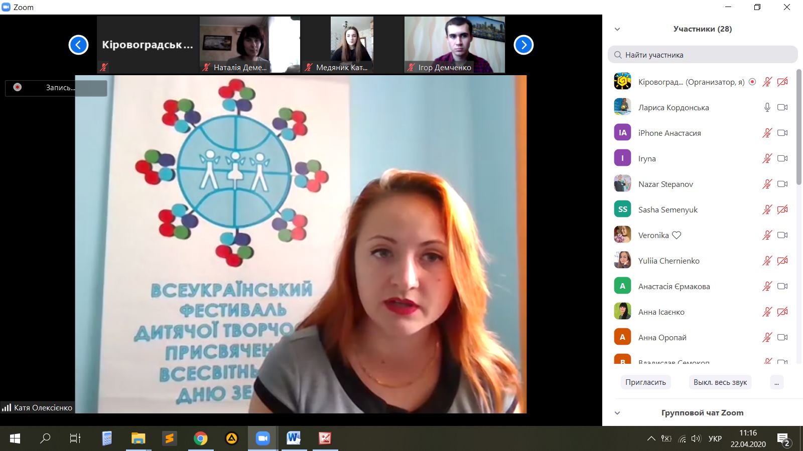 XXV Всеукраїнський відкритий фестиваль дитячої та юнацької творчості присвячений Всесвітньому Дню Землі, який проходив у форматі онлайн 21 – 24 квітня 2020 року у місті Кропивницькому, що на Кіровоградщині, відбувся.