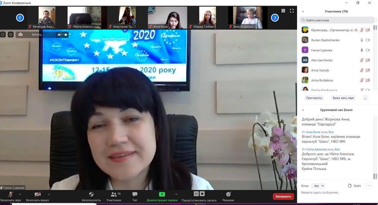 Ще рік тому, ми не могли подумати, як “Єврофест” може проходити online? Як без масштабних заходів, майстер-класів, концертів і без з’їздів усіх євроклубів області? Але впевнені, що цей фестиваль, стане особливим. До нашого фестивалю отримали змогу долучитися як представники з європейських країн, так і команди з Кіровоградської області та нашої країни.