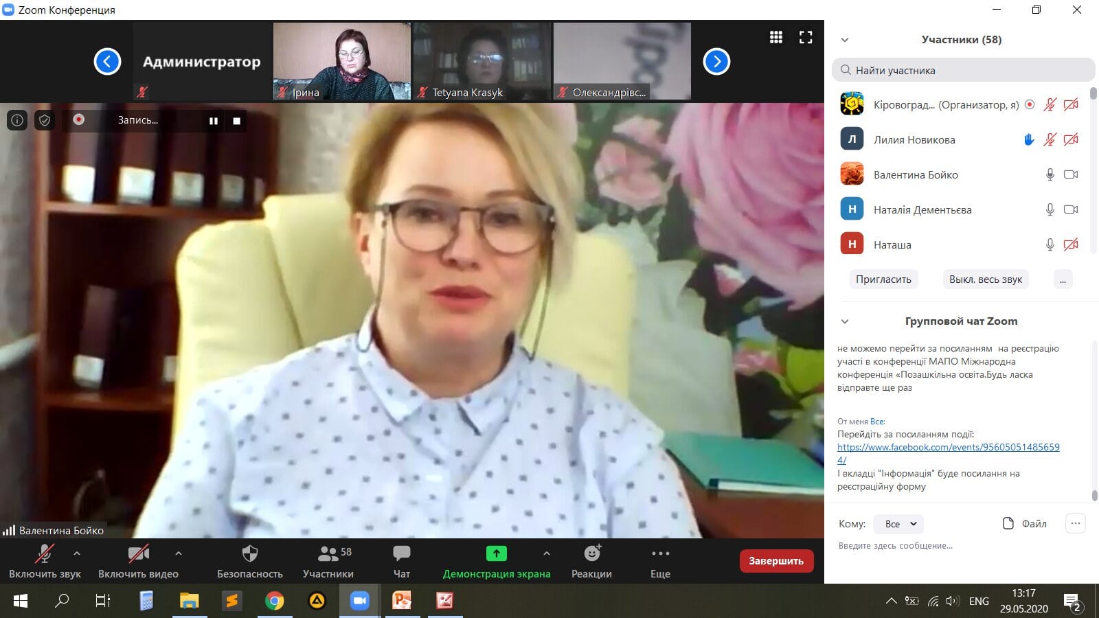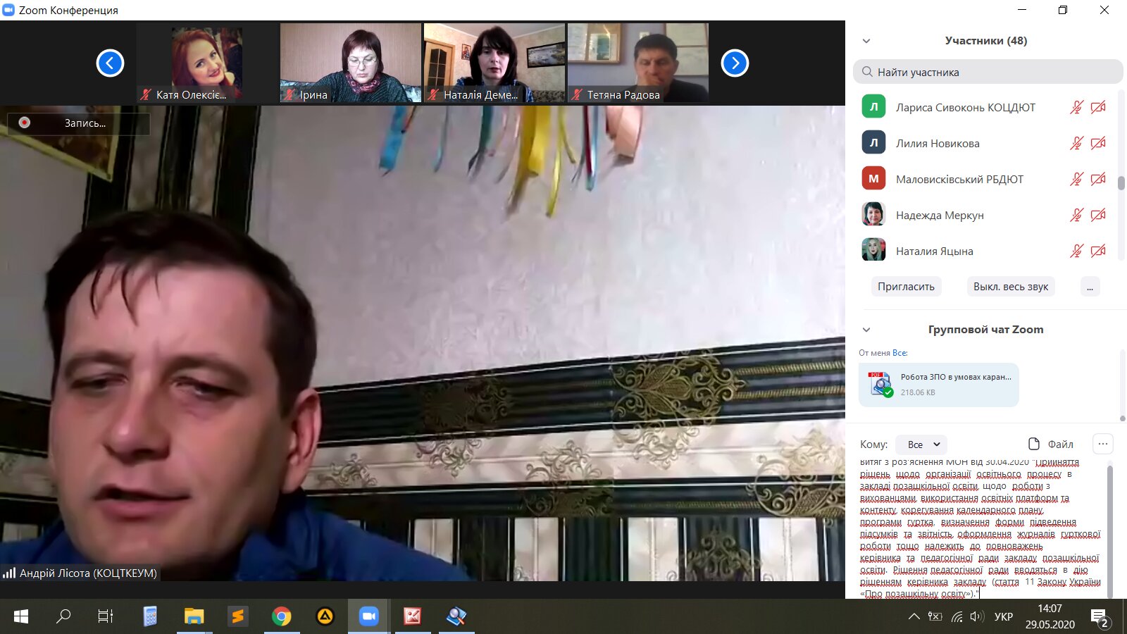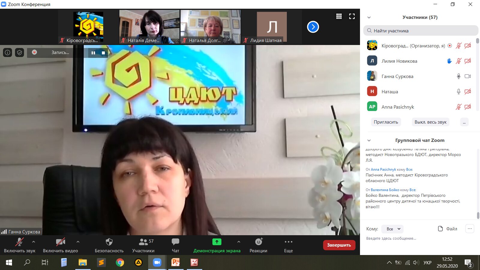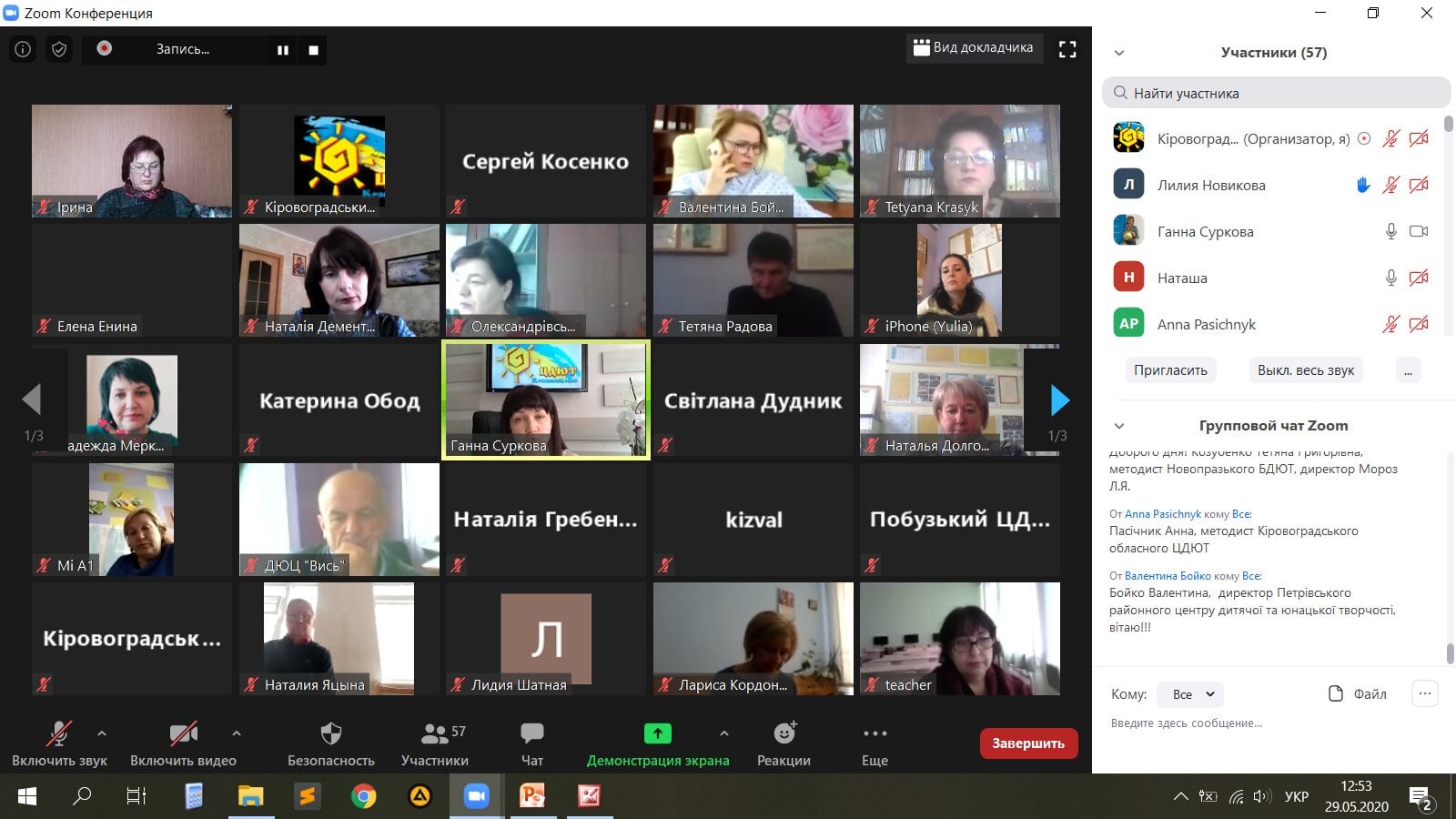 29 травня в режимі он лайн відбулася робоча нарада з керівним складом закладів позашкільної освіти області. Організатором наради виступив Кіровоградський обласний центр дитячої та юнацької творчості.
