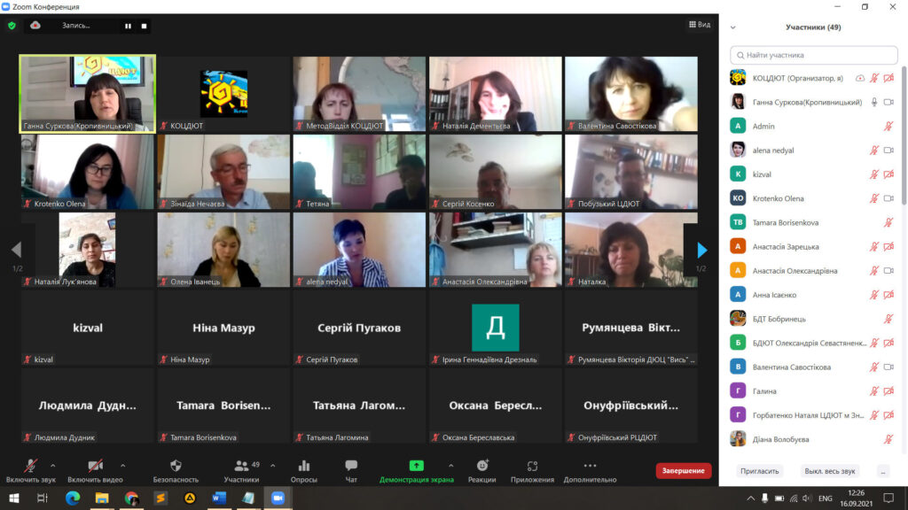 16 вересня 2021 року відбулася онлайн-нарада директорів, заступників директорів та методистів закладів позашкільної освіти Кіровоградщини, організована Кіровоградським обласним ЦДЮТ.