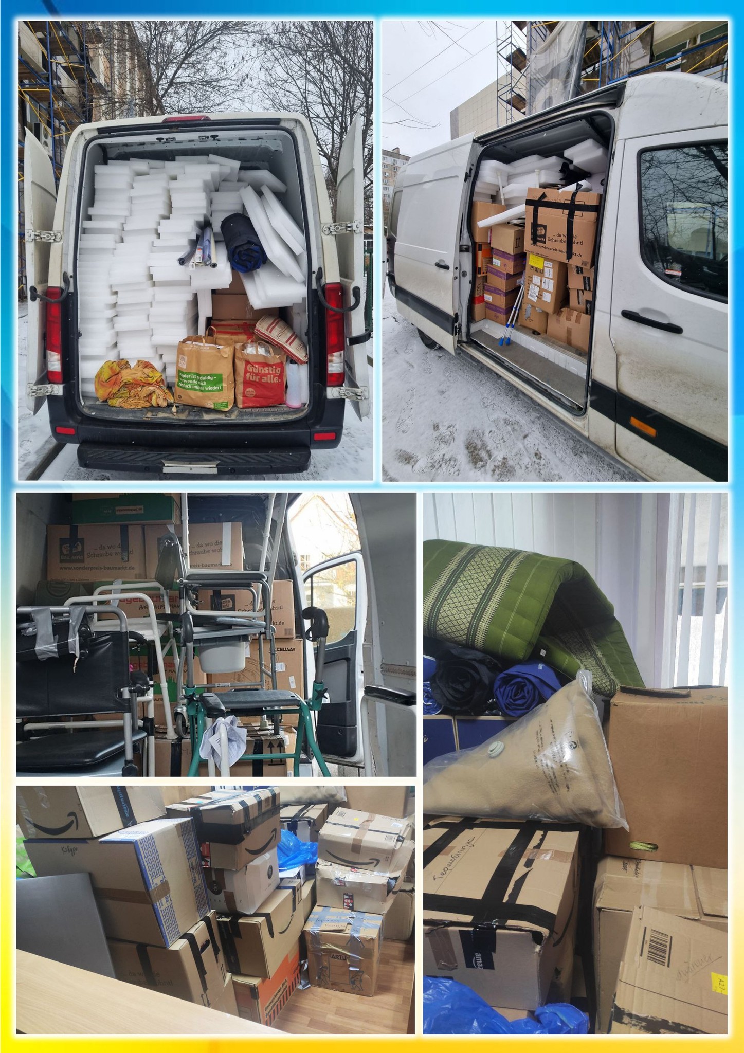 Цього разу було привезено з-за кордону теплий одяг для дітей та дорослих, взуття, постільна білизна, рушники, утеплювач, каремати, термобілизна, грілки, ходунки, милиці тощо.