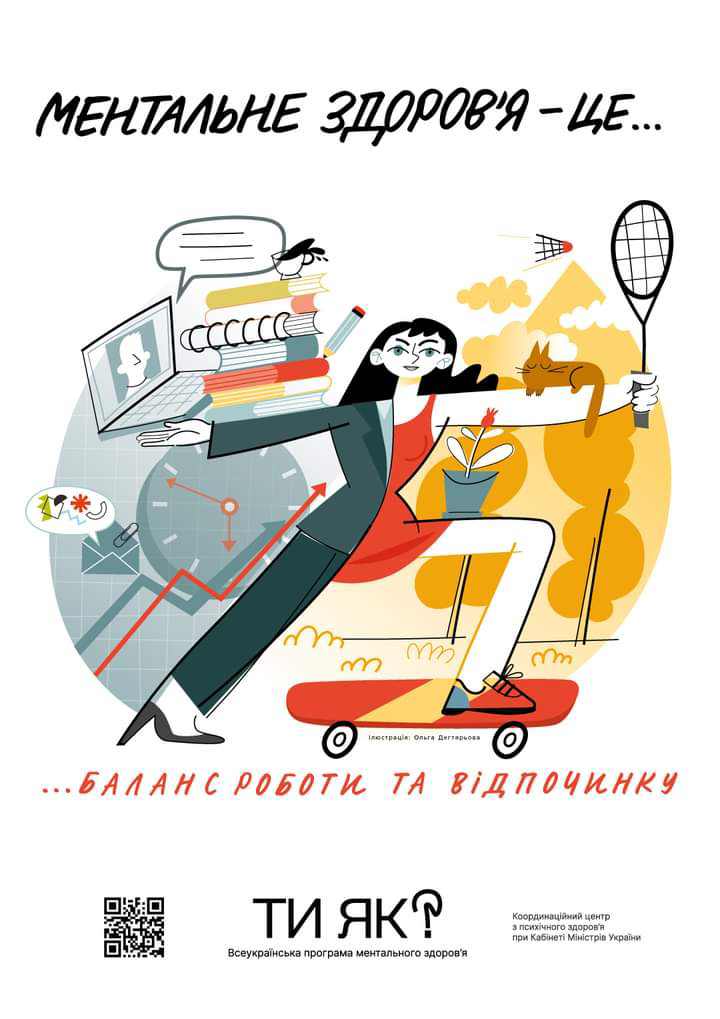 До Всесвітнього дня ментального здоров’я українська ілюстраторка Ольга Дегтярьова створила цикл постерів для програми «Ти як?» Охоче ділимося з вами, аби кожен міг відповісти собі на питання — «Що таке ментальне здоров’я та як я можу покращити свій стан?