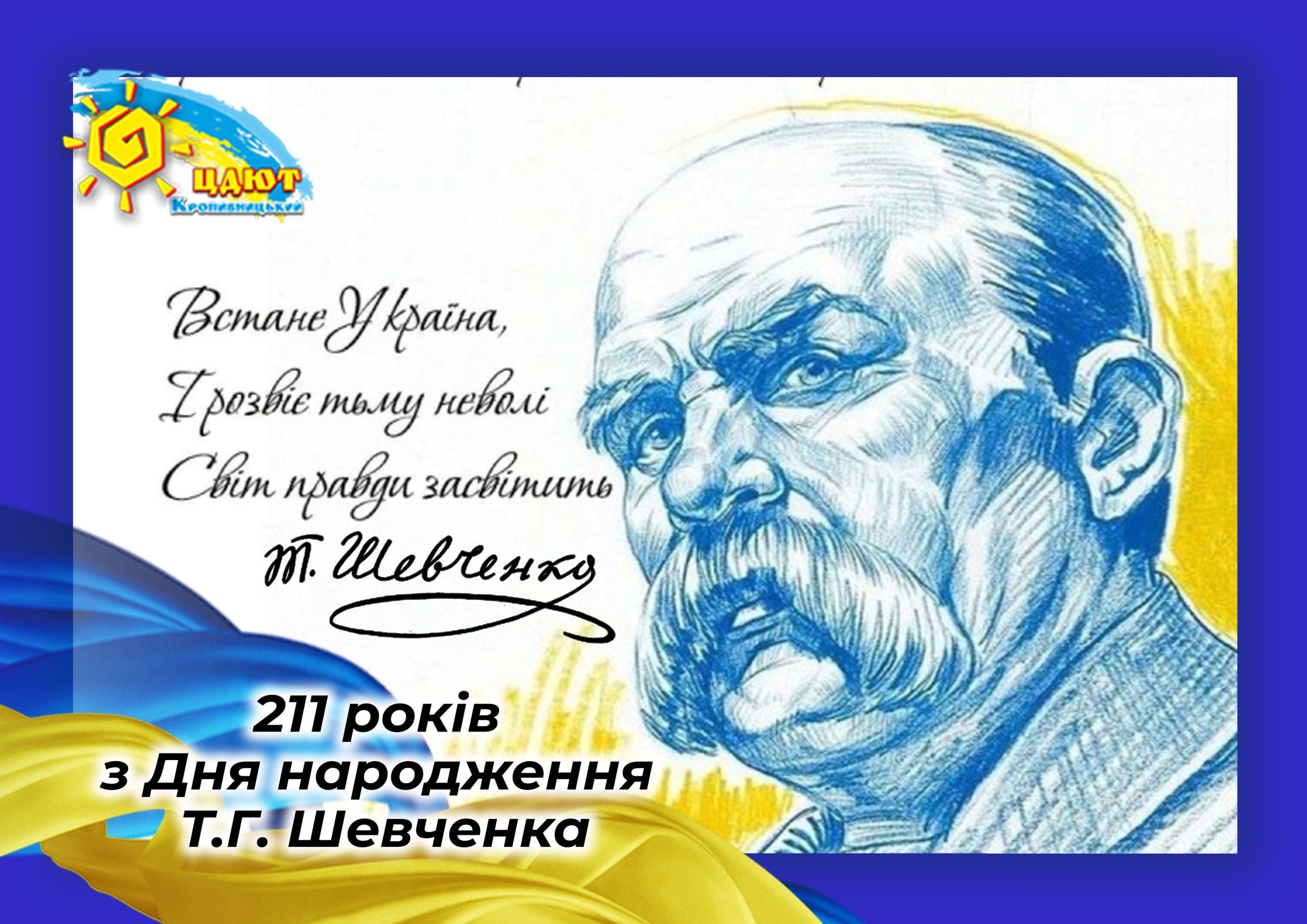 Сьогодні ми відзначаємо 211-ту річницю від дня народження Тараса Григоровича Шевченка – видатного поета, художника, мислителя та борця за волю України. Його слово крізь століття надихає, закликає до справедливості й нагадує про силу рідної мови та культури.