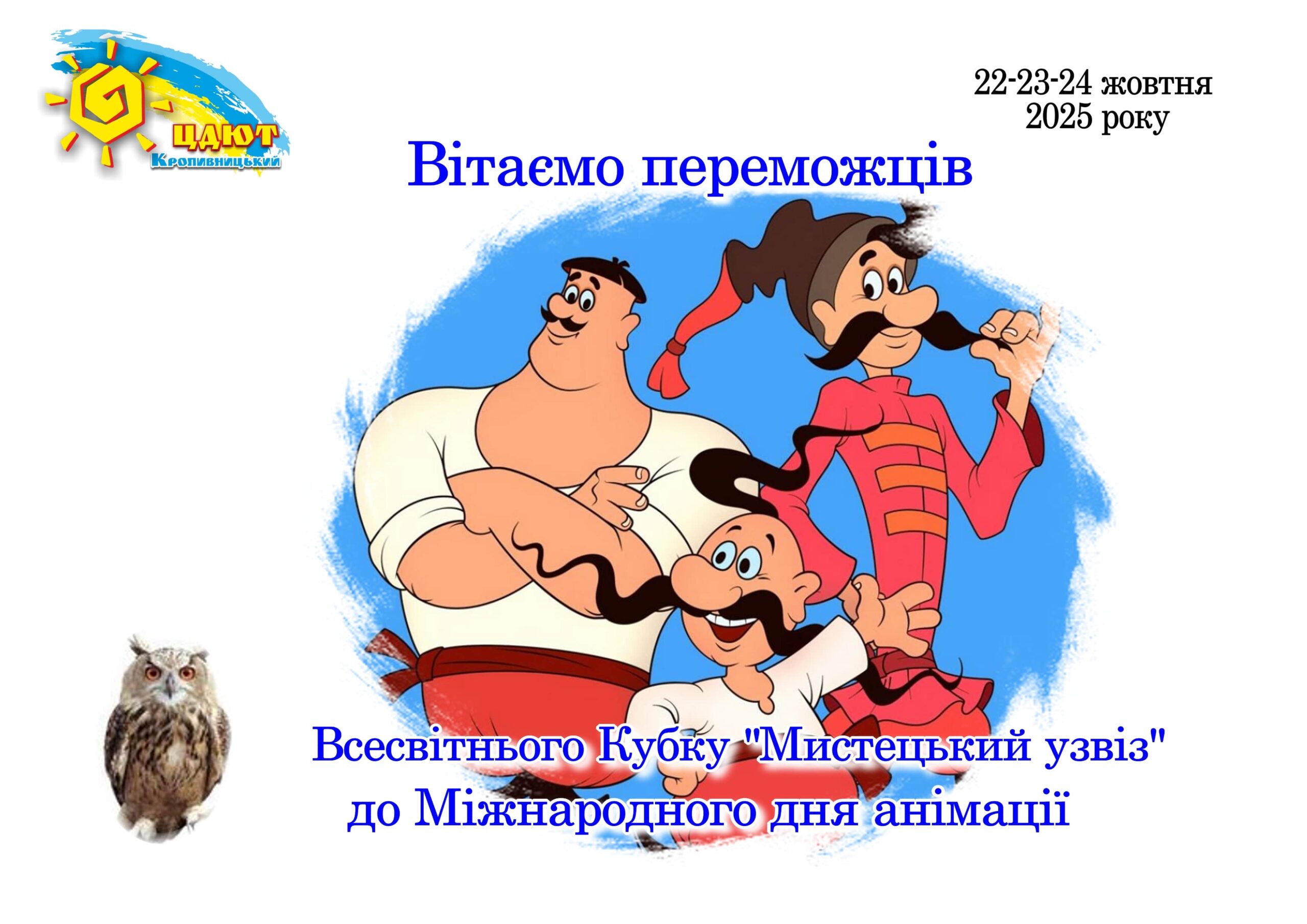 22, 23 та 24 жовтня 2025 року Кіровоградським обласним центром дитячої та юнацької творчості підготовлений та проведений онлайн Всесвітній Кубок з інтелектуальної гри «Мистецький узвіз» до Міжнародного дня анімації.