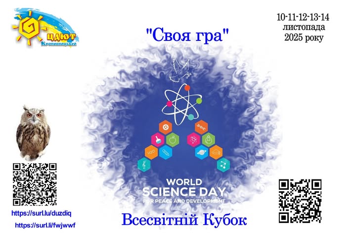 ЗАПРОШУЄМО до участі в Кубку з інтелектуальної гри «Своя гра» до Всесвітнього дня науки