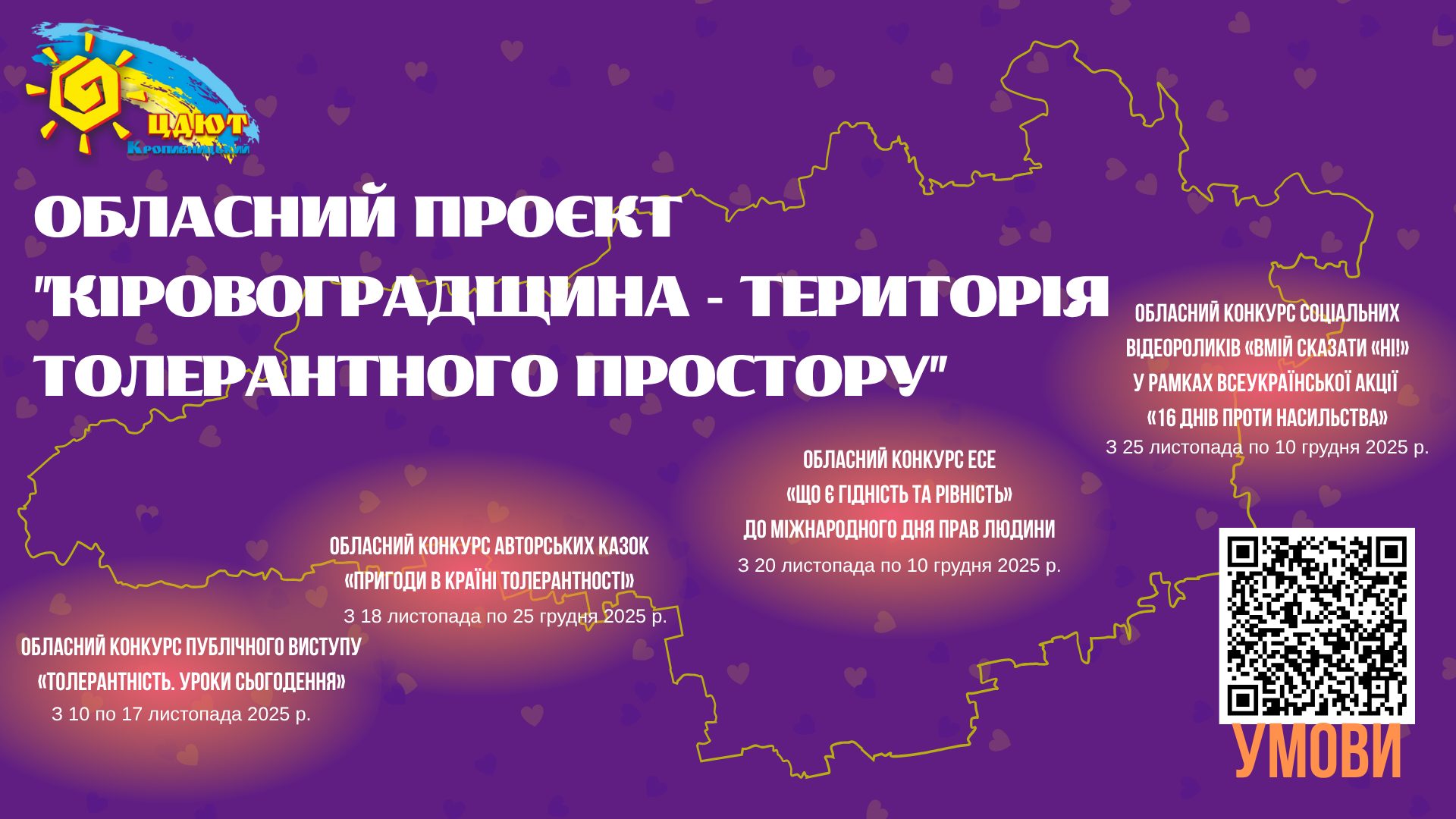 2025 Умови проведення проєкту Наказ департаменту освіти і науки № 19-ОД від 16.01.2024 “Про підсумки проведення конкурсів в рамках обласного проекту “Кіровоградщина – територія толерантного простору”